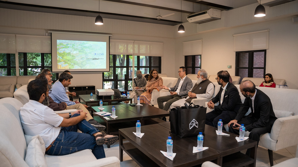 With the aim to establish collaboration between academia and industry, Dr. Lim Eu Shawn, Chief Global Solutions Officer, Aerodyne Group, visited LUMS on October 9, 2023. He was accompanied by the Group’s Director of Artificial Intelligence and Country Head, Mr. Adnan Chaudhry. They were welcomed by LUMS senior leadership including Dr. Tariq Jadoon, Acting Vice Chancellor and Provost; Dr. Muhammad Sabieh Anwar, Ahmad Dawood Chair and Dean, Syed Babar Ali School of Science and Engineering (SBASSE) and Ms. Nuzhat Kamran, Director, Office of Advancement. Faculty members, Dr. Muhammad Abubakr and Dr. Momin Ayub Uppal were also present, along with Mr. Rana Tariq Habib, Head, Career Services Office, LUMS