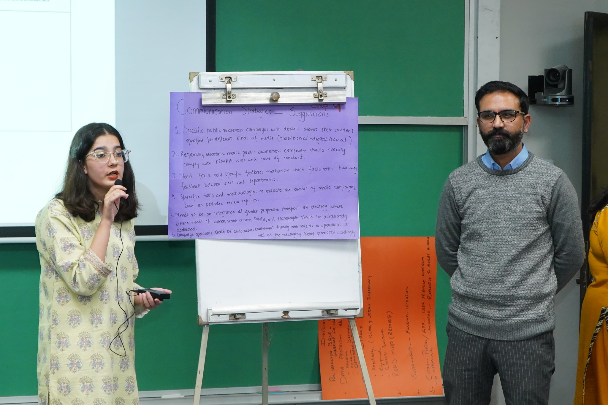 The group presentations included more effective implementation methods at the grassroots level to enhance community awareness and access to the programmes and services across Punjab. Group members advocated for the use of mass digital and traditional media (such as television, billboards, in-person campaigning camps, etc.) to raise awareness about various social development programmes of the SW&BM Department.