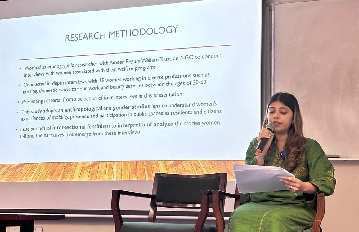 Her research explored how these women, particularly those commuting for work, have lives shaped by both the desire for upward mobility and dealing with societal expectations. “What are working women’s dreams and visions for their lives with regards to freedom, upward social mobility, and, of course, empowerment?” she asked. Ms. Wattoo shared responses from her interviews that offered intimate glimpses into how the respondents’ aspirations intersected with their experiences of public spaces.