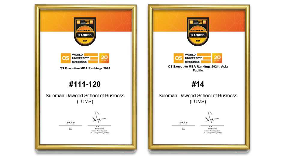 LUMS’ EMBA Programme Ranked #14 in Asia–Pacific by QS Rankings 2024
