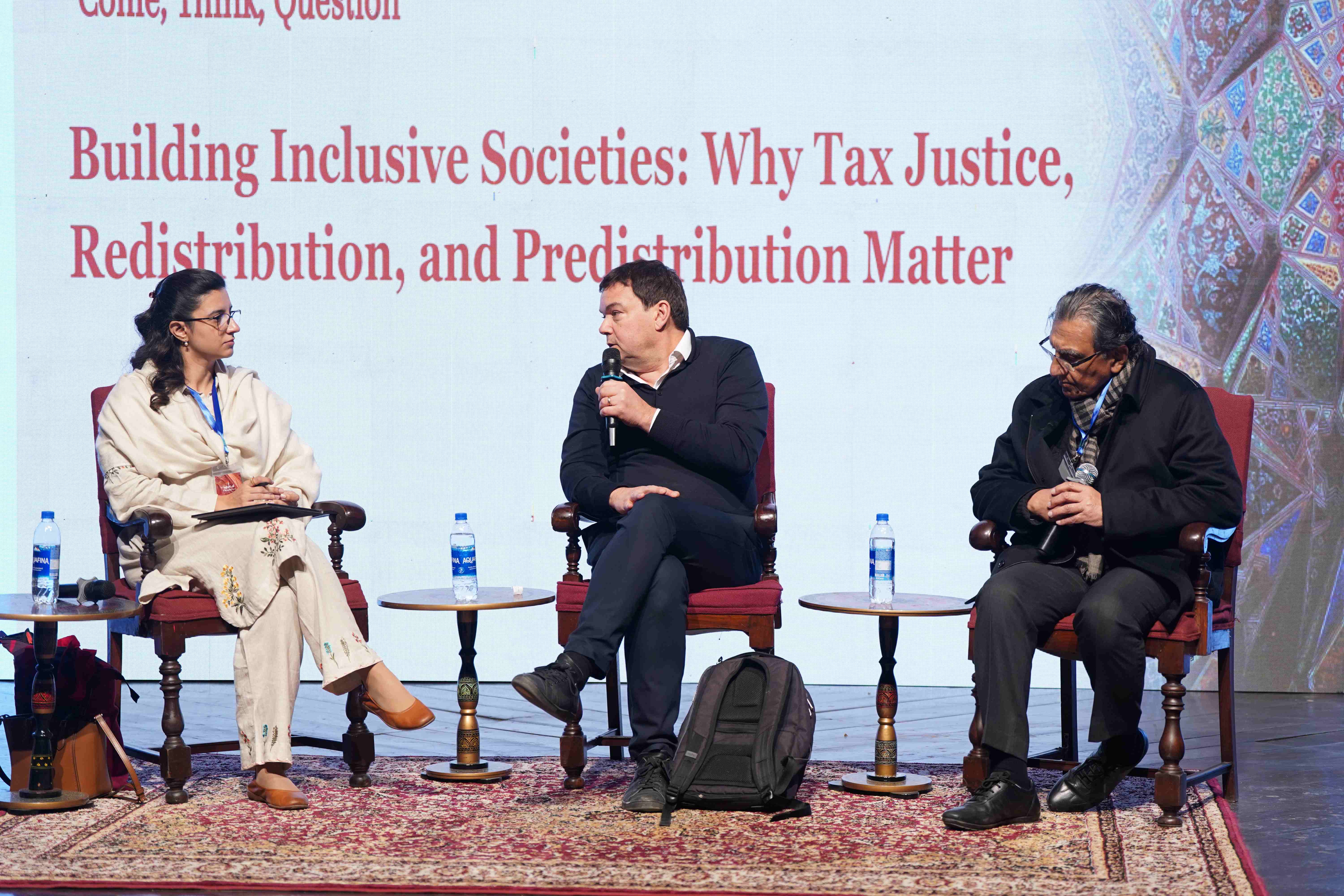 LUMS collaborated with ThinkFest to host Professor Thomas Piketty of the Paris School of Economics for a session titled "Building Inclusive Societies: Why Tax Justice, Redistribution, and Predistribution Matter." Dr. Farah Said, Executive Director of the Mahbub-ul-Haq Research Centre and Associate Professor of Economics at LUMS, moderated the discussion examining Pakistan's inequality patterns, where the top 10 percent capture 42 percent of total income while the bottom 50 percent receive just 19 percent. Professor Piketty drew on research from the World Inequality Database to demonstrate how more equal societies achieve stronger productivity through sustained investment in education, health, and human capital.